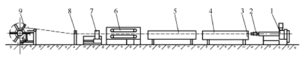 Som det fremgår av figur 1, består rørekstruderingsutstyret nedstrøms hovedsakelig av kjølevannstanken,avhentingsenhet, kutter, coiler, eller dumpebord.